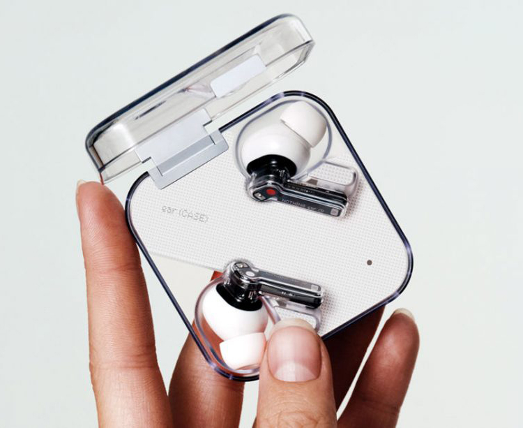 O Nothing Ear original (1), mostrado na primeira imagem, é equipado com drivers de 11,6 mm, tecnologia Active Noise Canceling e um controlador Bluetooth 5.2. Fornece até 4 horas de operação ao usar o sistema de redução de ruído, até 5,7 horas sem ele e até 34 horas de operação ao recarregar do estojo. A caixa tem formato quadrado.
