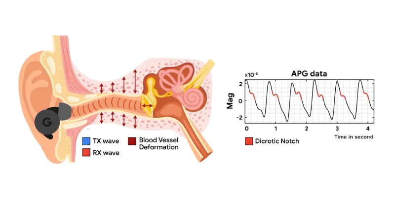 A técnica, criada pelo Google, permite converter ecos em leituras de frequência cardíaca, além de medir a variabilidade da frequência cardíaca (VFC). O método funciona mesmo ao reproduzir música e com “fraca vedação do fone de ouvido”. A precisão das medições pode ser afetada pelo movimento do usuário, mas o Google usou uma abordagem multitons para “determinar a melhor frequência para medir a frequência cardíaca” e usá-la para produzir uma “forma de onda de pulso de alta qualidade”.