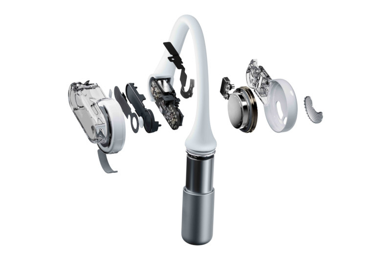 Nada apresentou o Ear (aberto), seus primeiros fones de ouvido sem fio abertos, como você pode imaginar pelo nome. Eles se distinguem por um design de templo e pelo estilo Nothing de parte do corpo exclusivo. Os fones de ouvido não possuem sistema de redução de ruído, pois são direcionados a usuários que estão acostumados a se orientar claramente no espaço e consideram importante o conforto durante o dia.