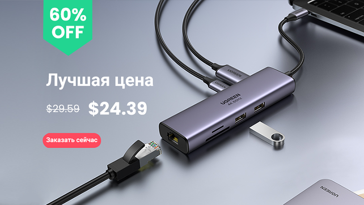 Em busca de tamanhos de laptop compactos, a Apple e outros fabricantes estão abandonando cada vez mais o grande número de conectores. Neste caso, o problema de sua falta será resolvido por um hub USB, como UGREEN USB C HUB 4K 60 Hz com a capacidade de se conectar a sete portas adicionais, incluindo HDMI, USB Type-C (Power Delivery), USB 3.0 , Slots de cartão SD / TF e conector RJ-45 para conexão Ethernet.