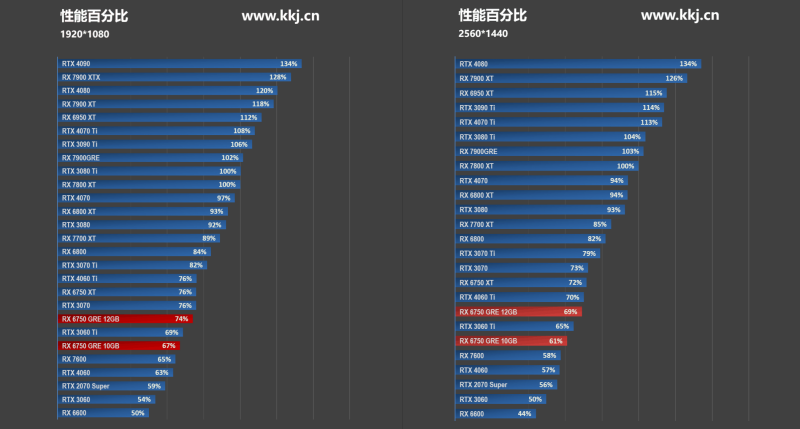Ambas as versões da Radeon RX 6750 GRE já foram analisadas pela publicação chinesa MyDrivers. Abaixo você pode ver gráficos de desempenho relativo de novos produtos em comparação com modelos de placas de vídeo de outros fabricantes em jogos com resolução de 1080p e 1440p.