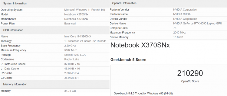 Um misterioso laptop X370SNx de um fabricante desconhecido apareceu no banco de dados de teste sintético Geekbench. Ele é equipado com um processador móvel Intel Core i9-13900HX de 24 núcleos e a principal placa de vídeo móvel GeForce RTX 4090.