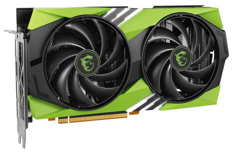 Uma característica distintiva do modelo MSI GeForce RTX 4060 Gaming X NV Edition é o seu design. Em particular, a cor verde brilhante característica da NVIDIA prevalece na cor do sistema de refrigeração.