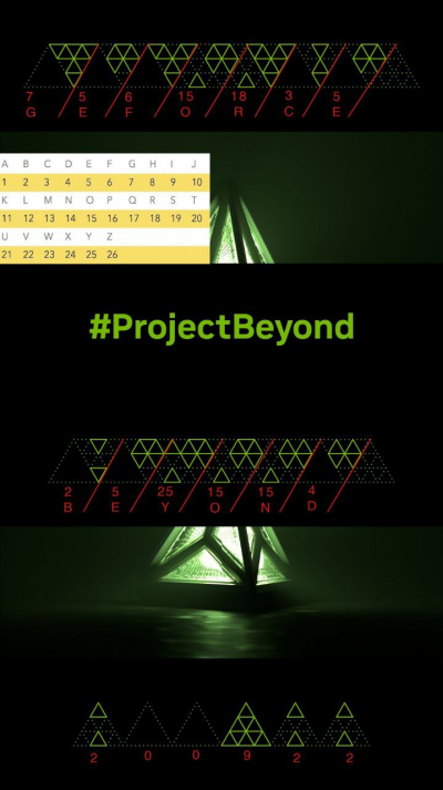 Usuários curiosos descobriram muito rapidamente. Descobriu-se que o número de triângulos nas colunas verticais é responsável por uma determinada letra do alfabeto inglês e indica seu número de série. Como resultado, a pista acabou sendo uma mensagem da GeForce Beyond, referindo-se ao evento de mesmo nome, que a NVIDIA realizará em 20 de setembro.