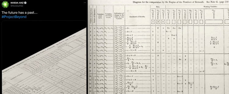A tabela é um diagrama de um algoritmo para calcular números de Bernoulli. Foi criado pela matemática inglesa Ada Lovelace em 1843 para uma máquina analítica projetada pelo matemático britânico Charles Babbage. Lovelace compilou o primeiro programa do mundo para esta máquina, introduziu os termos “ciclo” e “célula de trabalho”. E ela é considerada a primeira programadora da história. Ao mencionar a tabela acima, a NVIDIA confirmou indiretamente os rumores de que a nova arquitetura gráfica das placas de vídeo para jogos da série GeForce RTX 40 se chama Ada Lovelace.