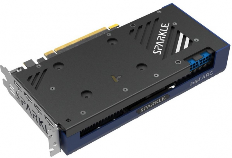 Por sua vez, a Sparkle preparou uma versão do Arc A580 ORC OC. Também é equipado com sistema de refrigeração com duas ventoinhas e recebeu dois conectores de 8 pinos para alimentação adicional.