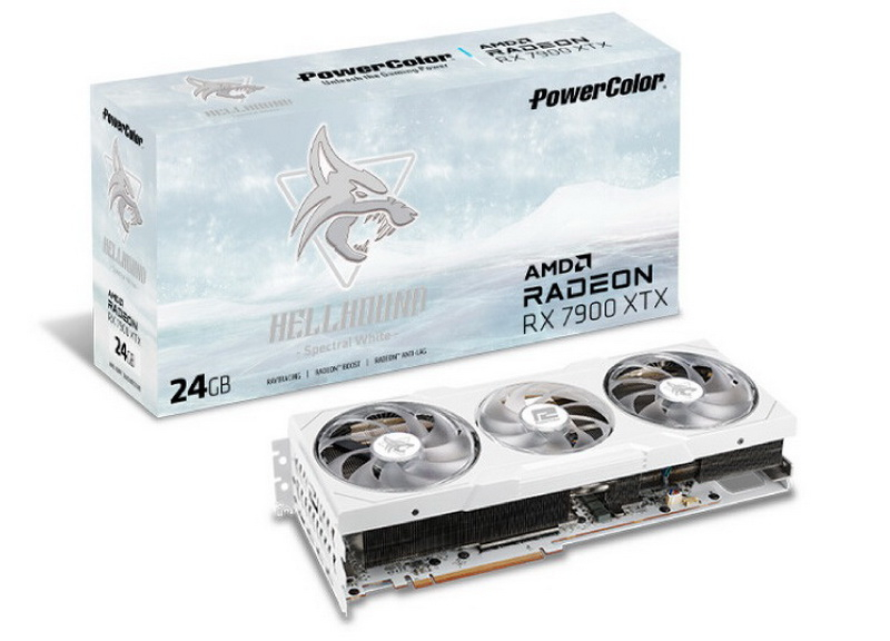 A PowerColor apresentou a placa de vídeo branca como a neve Radeon RX 7900 XTX Hellhound Spectral White, na qual até a placa de circuito impresso é feita de textolite branco, o que pode ser considerado uma raridade nos dias de hoje. A novidade pode agradar a quem monta PCs com componentes de cores claras.