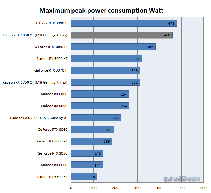 MSI Radeon RX 6950 XT Gaming X Trio. Demanda de pico de curto prazo