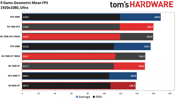 As vendas das placas de vídeo Radeon RX 7900 XTX e RX 7900 XT começam amanhã. E hoje, recursos especializados da Internet são permitidos para familiarizar o público com esses novos produtos, e aqui apresentaremos os principais trechos de materiais estrangeiros. Breve conclusão: a Radeon RX 7900 XTX mais antiga acabou sendo mais rápida que a GeForce RTX 4080, e a Radeon RX 7900 XT mais jovem está no nível da GeForce RTX 3090 Ti. Mas em ambos os casos – sem rastreamento. Ao mesmo tempo, os dois novos produtos da AMD são muito mais baratos que seus concorrentes.