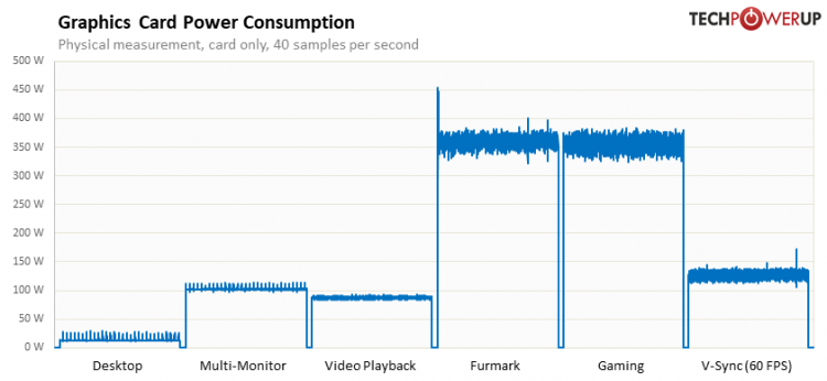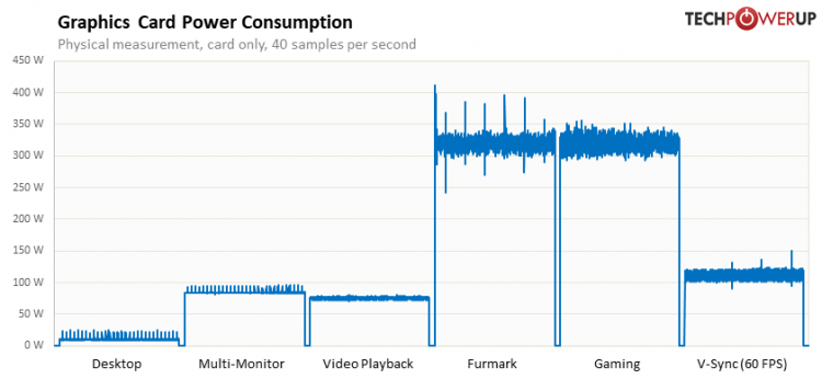 O consumo de energia declarado das placas de vídeo Radeon RX 7900 XTX e Radeon RX 7900 XT é de 350 e 315 watts, respectivamente. No modo inativo, o primeiro consome 13 watts, o segundo – 11 watts. O consumo máximo de energia em jogos em resolução 4K para o modelo mais antigo, segundo a TechPowerUp, era de 356 watts. O mais novo nas mesmas condições consumiu até 320 watts. Em ambos os casos, isso é mais do que a mesma GeForce RTX 4090, que no mesmo cenário consome cerca de 304 watts com um máximo declarado de 320 watts. De acordo com a Tom’s Hardware, no teste de estresse da Furmark, as placas de baixo custo e de alto nível da AMD consumiram 318,6 e 365,8 watts, respectivamente.