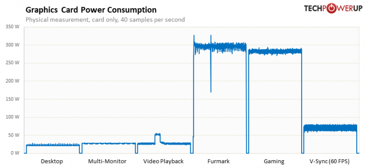 Em termos de consumo de energia, de acordo com o TechPowerUp, a placa de vídeo MSI GeForce RTX 4070 Ti Suprim X consome 23W em modo inativo e 30W em reprodução de vídeo, uma média de 283W em jogos e um pico de consumo de 328W. De acordo com os testes de hardware de Tom, a placa de vídeo ASUS GeForce RTX 4070 Ti TUF Gaming OC consumiu 265 W no Metro Exodus, que está abaixo do nível declarado de TDP de 285 W. Colegas da ComputerBase conseguiram atingir um consumo de 285 watts da mesma placa de vídeo no Doom Eternal em 4K, e a Gigabyte GeForce RTX 4070 Ti Eagle mostrou 289 watts lá.