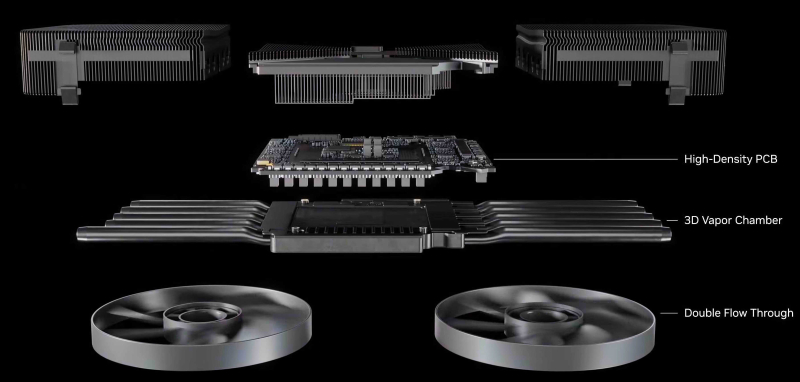 A GPU GB202 possui 21.760 núcleos CUDA (33% a mais que o RTX 4090), 680 unidades de textura, 192 unidades de rasterização, 170 unidades SM, 680 núcleos tensores Gen 5 e 170 núcleos RT Gen 4. A frequência base da GPU é 2017 MHz, o máximo é declarado em 2.407 MHz. Mas, como mostra a prática, o RTX 4090 em jogos, o novo produto será capaz de fornecer uma frequência maior. O mesmo RTX 4090 produz 2.750 MHz, apesar dos 2.520 MHz declarados pela Nvidia. O carro-chefe da série Blackwell recebeu 32 GB de nova memória GDDR7 com velocidade de 28 Gbit/s por contato e suporte para interface de 512 bits. Graças a isso, a largura de banda de memória do RTX 5090 é 78% maior que seu antecessor, totalizando 1,79 TB/s.