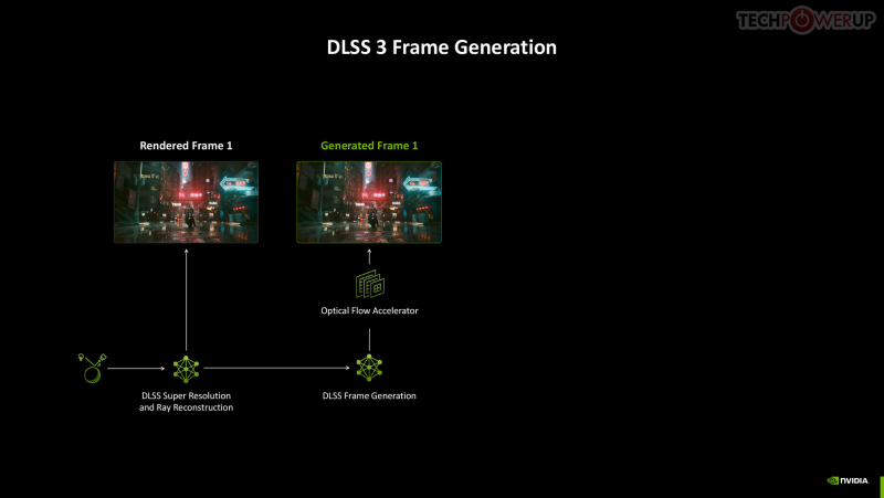 O funcionamento de um gerador multiframe no jogo Cyberpunk 2077. Fonte da imagem: YouTube/Jayztwocents