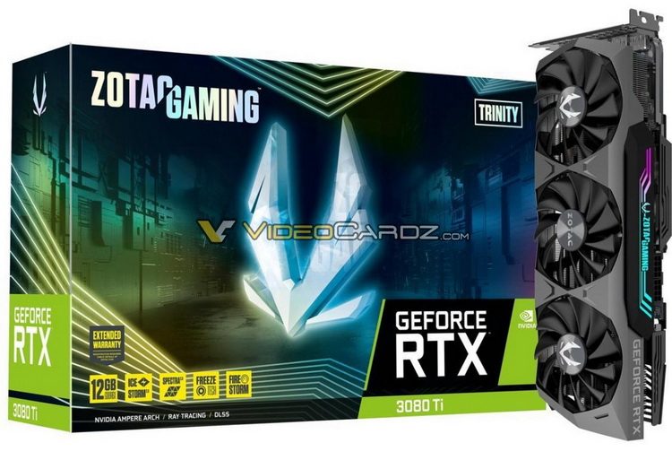 A Zotac lançará placas de vídeo GeForce RTX 3080 Ti nas versões AMP Holo e Trinity baseadas no processador NVIDIA GA102-225. A série AMP é o carro-chefe do fabricante, exceto para as placas de vídeo da série ArcticStorm, que são equipadas com um bloco de água LSS. O fabricante também produz versões exclusivas para a China, mas essas soluções não são vendidas no mercado internacional.