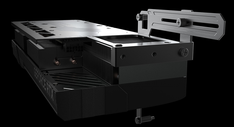 Ao contrário de outros suportes, que geralmente são instalados nos slots de expansão inferiores do gabinete sob a placa de vídeo ou são feitos na forma de suportes, o suporte GeForce RTX 4090 WindForce V2 24G é fixado em orifícios na placa-mãe.