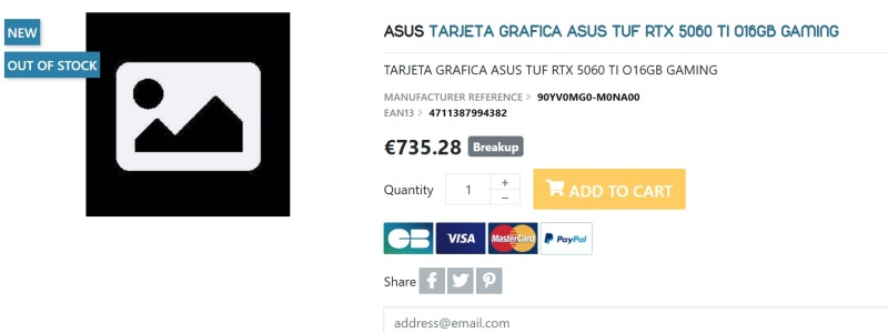 De acordo com fontes online, o acelerador gráfico Nvidia GeForce RTX 5060 Ti começou a aparecer em lojas de varejo na Europa. Assim, em uma das lojas francesas chamada Pure Gaming, foram descobertas placas de vídeo Asus GeForce RTX 5060 Ti. O vendedor colocou o modelo com 8 GB de memória de vídeo no preço de € 489, enquanto a versão com 16 GB de memória de vídeo tem o surpreendente preço de € 735.