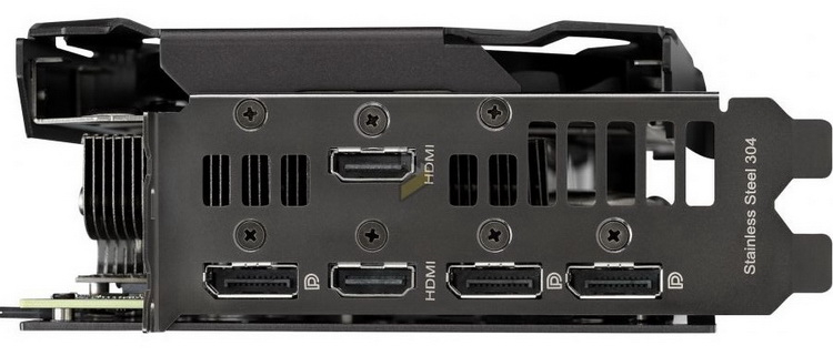 O conjunto de interfaces de vídeo externas da novidade é composto por duas HDMI 2.1 e três DisplayPort 1.4. Para energia adicional, a placa usa um conector de 8 pinos.