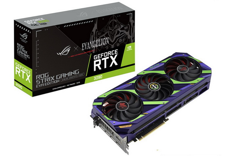 A ASUS lançou outro acelerador gráfico, projetado com base no anime japonês. Após a bem-sucedida série de produtos inspirados em anime GUNDAM, o fabricante taiwanês apresentou a placa gráfica GeForce RTX 3090 ROG Strix EVA Edition (ROG-STRIX-RTX3090-O24G-EVA), emprestando o estilo de anime Evangelion.