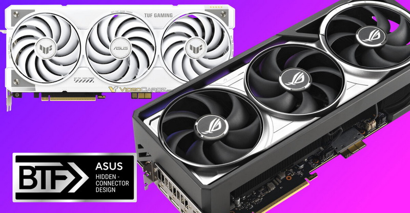 A Asus lançou as primeiras placas de vídeo com o padrão BTF 2.5 — TUF Gaming GeForce RTX 5070 Ti 16GB BTF White e ROG Astral GeForce RTX 5090 BTF OC Edition, equipadas com um novo conector de alimentação oculto GC-HPWR proprietário. Este conector é removível, o que, juntamente com a presença de um conector de alimentação padrão de 12+4 pinos, permite o uso de placas de vídeo com placas-mãe comuns.
