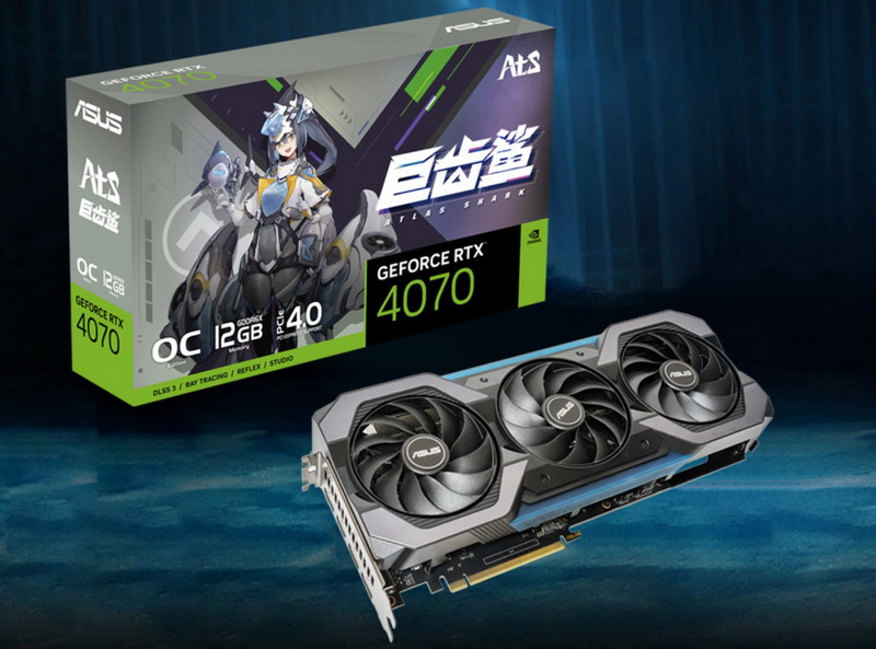 A ASUS apresentou a placa de vídeo GeForce RTX 4070 Atlas Shark para o mercado chinês. A novidade pertence à série Megalodon, é baseada em uma placa de circuito impresso totalmente customizada e está equipada com um sistema de refrigeração massivo.