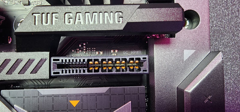 O conector de alimentação tipo faca adicionado à placa de vídeo é apenas um conceito. Ele é implementado em apenas uma placa de vídeo e apenas em uma placa-mãe da série Z790 TUF com conectores de alimentação movidos para trás, incluindo dois soquetes adicionais de 12 V de oito pinos através dos quais a energia é fornecida à placa de vídeo.