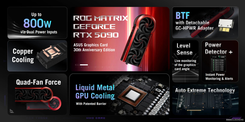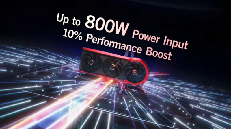 A Asus afirma ter overclock adicional para o processador gráfico com 21.760 núcleos CUDA usados na placa de vídeo. Sua frequência de boost no modo de 800 W é de 2.730 MHz. Segundo a Asus, isso proporciona um aumento de 10% no desempenho em comparação com a versão de referência da RTX 5090.