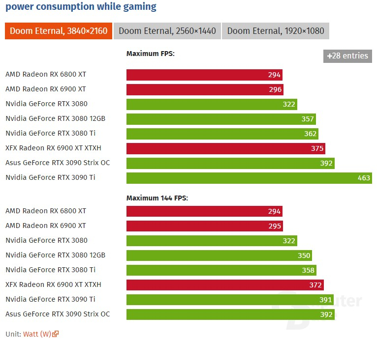 Na realidade, o modelo da ASUS, dependendo da resolução em desempenho máximo, consumia de 387 a 463 watts. Ao mesmo tempo, os valores de consumo de pico se aproximaram de 480 watts. Em termos de eficiência no cálculo de FPS por watt, a novidade acabou sendo pior do que outras placas de vídeo, segundo a ComputerBase.