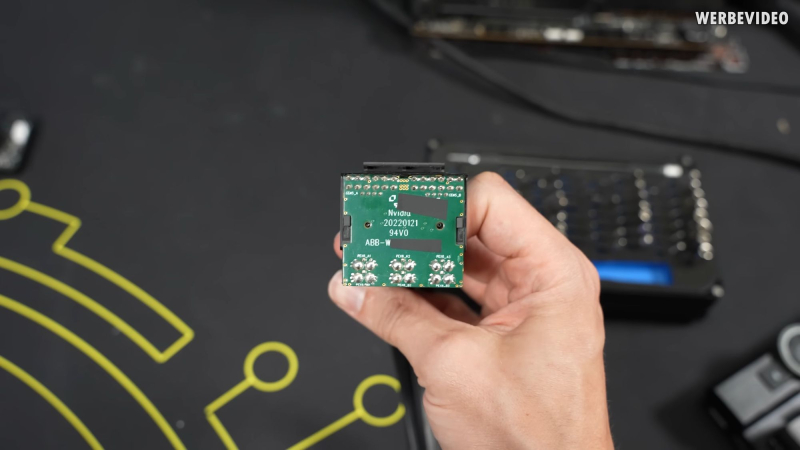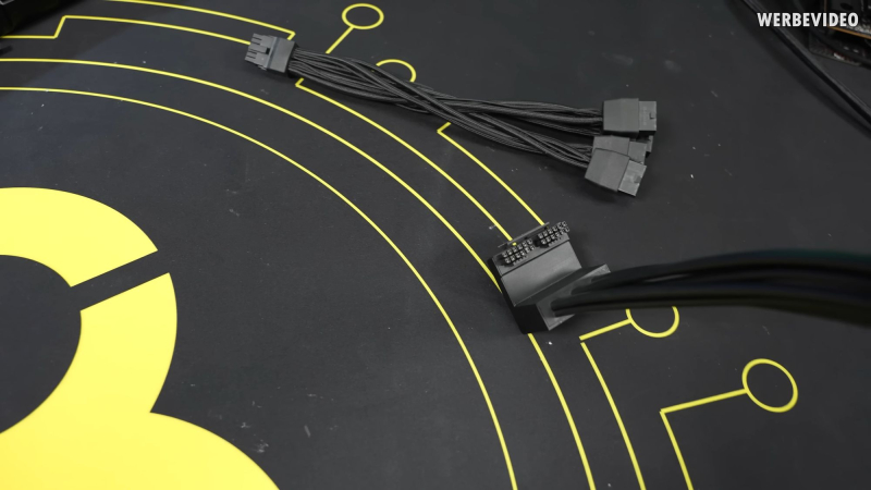 A Nvidia também lançou um adaptador de energia especial para a placa de vídeo — de dois conectores 12VHPWR combinados em uma única placa para até seis conectores PCIe de 8 pinos. Assim, o adaptador poderia, teoricamente, transferir até 900 W de energia (cada PCIe de 8 pinos foi projetado para transferir 150 W).