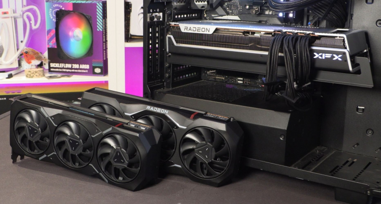 Uma comparação direta mostra que a nova geração de placas gráficas Radeon é muito mais compacta do que os modelos de referência GeForce RTX 4090 e GeForce RTX 4080, que são considerados soluções compactas dentro da nova série de aceleradores NVIDIA em comparação com versões não-referência.