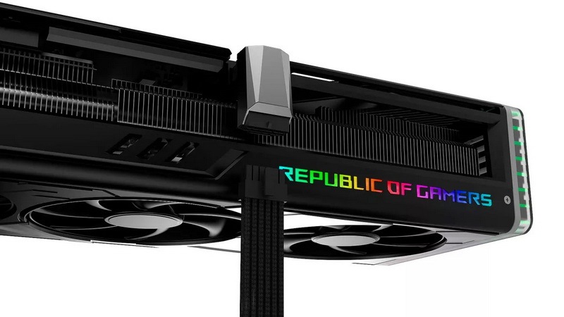 “A ASUS apresentou um modelo conceitual de uma placa de vídeo que não está equipada com um conector de alimentação 12VHPWR ou os soquetes usuais de 8 pinos. Em vez disso, o fabricante equipou a placa de vídeo com um conector faca de alimentação adicional, que é instalado em um slot especial na placa-mãe. Este último, por sua vez, está equipado no verso deste slot dois soquetes adicionais de 12 V de oito pinos através dos quais a energia é fornecida ao acelerador.”