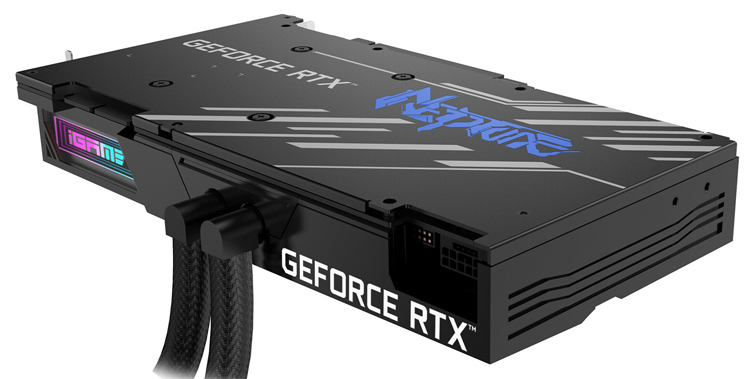 A versão iGame GeForce RTX 3090 Ti Neptune está equipada com um sistema de refrigeração líquida. O modelo GeForce RTX 3090Ti NB EX recebeu um esquema de cores preto e vermelho, e um cooler com um enorme dissipador de calor e três ventoinhas é responsável pela dissipação de calor.