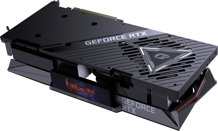 A iGame GeForce RTX 3090 Ti Vulcan opera em uma frequência base de 1560 MHz, e a frequência máxima no modo turbo é de 1920 MHz. Na parte lateral há um display de informações com resolução de 480 × 128 pixels e capacidade de girar 90 graus. O sistema de resfriamento contém três ventoinhas e, em um gabinete de computador, a placa terá 3,5 slots de expansão. Implementada iluminação RGB multicolorida. Para trabalhar com o acelerador, você precisa de uma fonte de alimentação com potência de pelo menos 850 W.