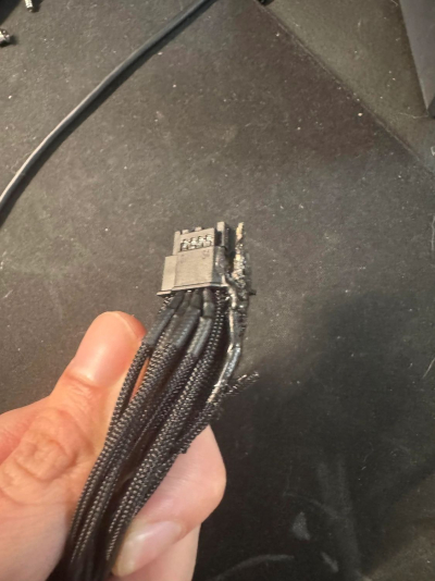 Segundo o usuário, ele usou um cabo de alimentação Moddiy para conectar a placa de vídeo, que atende às especificações do padrão de energia ATX 3.0 e PCIe 5.0 e é certificada para fornecer até 600 W de energia à placa de vídeo. O próprio fabricante do cabo afirma que este é um cabo do padrão 12V-2×6 atualizado, que substituiu o 12VHPWR compatível com versões anteriores.