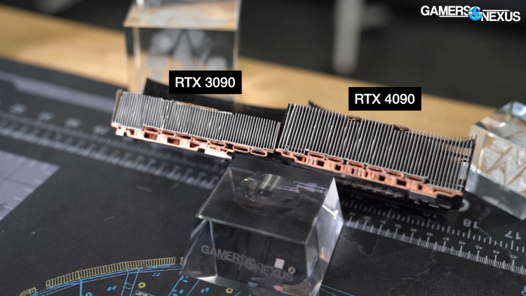 Um engenheiro da NVIDIA mostrou um dissipador de calor cortado da versão de referência da GeForce RTX 4090 Founders Edition. Comparado ao carro-chefe da geração anterior, a GeForce RTX 3090, o design da câmara de vapor mudou para a nova placa gráfica. Tornou-se mais amplo, devido ao qual a área de contato com a GPU aumentou.