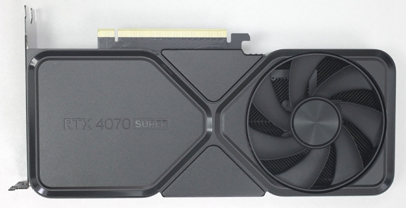 A versão padrão do cartão é muito compacta. Suas dimensões são 240 × 115 × 42 mm. Serão necessários dois slots de expansão no gabinete do PC. O conjunto de conectores externos para o RTX 4070 Super na versão de referência não mudou em relação ao RTX 4070 original. A placa recebeu três DisplayPort 1.4a, um HDMI 2.1a e um conector de alimentação de 12+4 pinos.