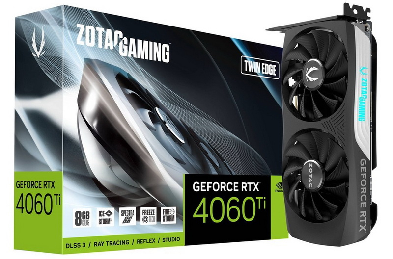A Zotac apresentou a GeForce RTX 4060 Ti Twin Edge com e sem overclock de fábrica, bem como a GeForce RTX 4060 Solo. As versões Twin Edge estarão disponíveis em armazenamento de 8 GB e 16 GB, em cinza/azul padrão e também em branco.