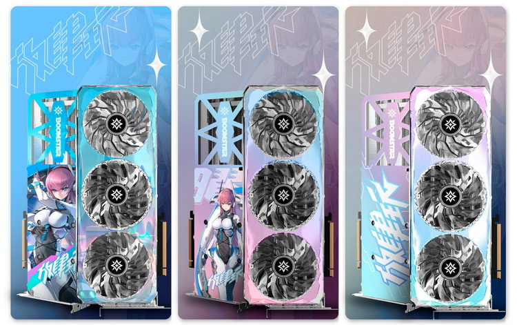 Exclusivamente para o mercado chinês, a empresa apresentou a Boomstar GeForce RTX 4090, RTX 4080 16GB e RTX 4080 12GB. Eles são caracterizados pela presença de um design brilhante no estilo anime.