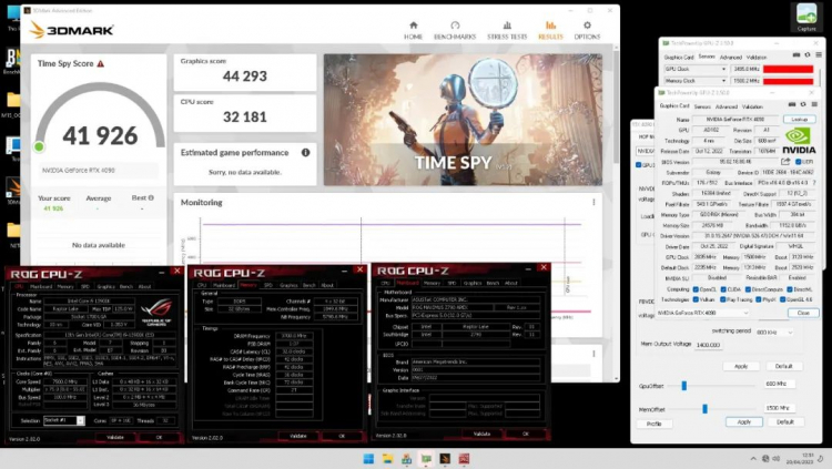 - Pontuação de gráficos extremos do 3DMark Time Spy – 23.229 pontos;
