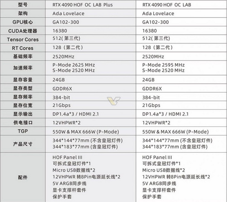 A GPU GeForce RTX 4090 HOF OC Lab roda a 30 MHz abaixo da versão OC Lab Plus. Esta é talvez a única diferença entre as duas opções. A versão com menos overclock tem o mesmo limite de potência de 666 watts. Os pacotes de entrega de placas de vídeo não diferem.