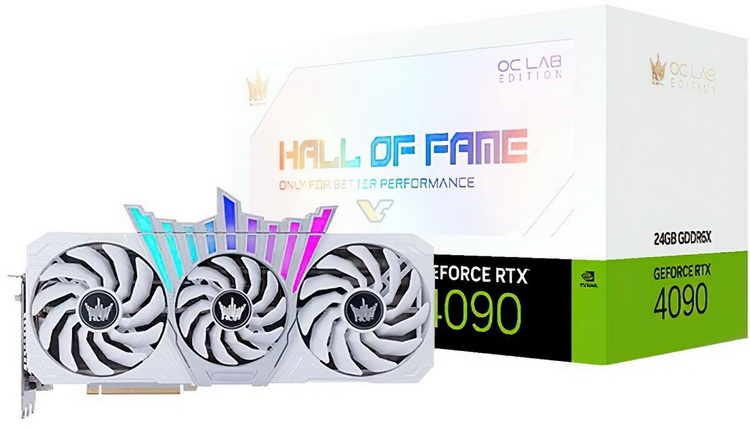 Formalmente, o GeForce RTX 4090 Hall of Fame é a placa de vídeo mais poderosa do mercado. No entanto, ela não é a mais rápida. A novidade possui um sistema de BIOS duplo. Para o modo de firmware produtivo, a frequência da GPU é declarada em 2625 MHz. Isso é um pouco menos do que os modelos ASUS ROG Strix OC ou MSI Suprim Liquid, para os quais os fabricantes de GPU indicam uma frequência de 2640 MHz.