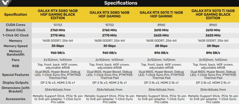 A Galax lançou uma nova série de placas de vídeo HOF Gaming no mercado global. Os primeiros modelos da série são a GeForce RTX 5080 e a RTX 5070 Ti HOF Gaming, que se diferenciam das placas HOF tradicionais pelo overclocking de fábrica e design mais modestos.