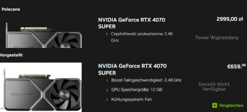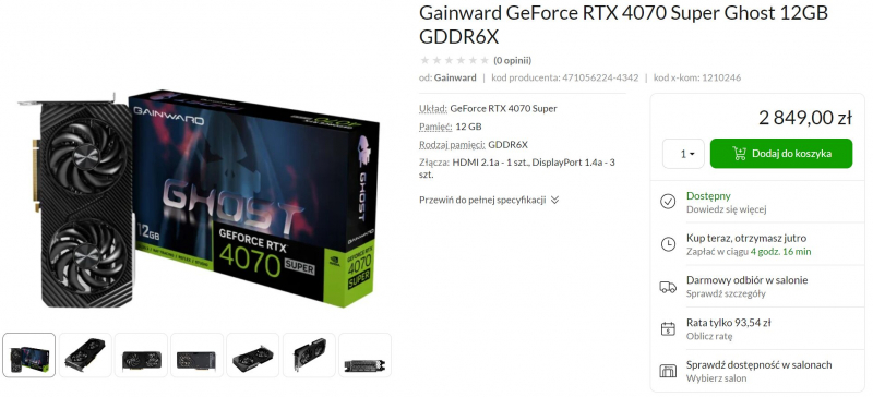 De acordo com o portal VideoCardz, na Polónia, um dos maiores retalhistas de componentes de computador, a X-Kom, reduziu os preços de alguns modelos RTX 4070 Super dos recomendados 2.999 para 2.849 zlotys polacos (em 5%, de $740 para $705). O desconto é oferecido, por exemplo, no modelo Gainward GeForce RTX 4070 Super Ghost sem overclock de fábrica. Esta placa é um dos modelos listados à venda pelo preço sugerido pela NVIDIA.