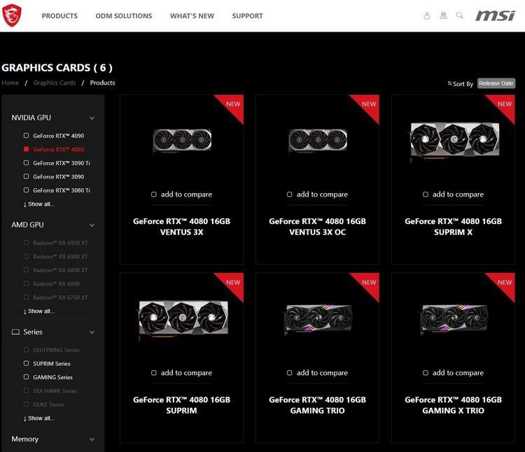 À disposição do portal TechPowerUp estavam imagens das placas de vídeo GeForce RTX 4080 da MSI. A fabricante vai lançar pelo menos três versões, cada uma em duas versões com frequências diferentes: GeForce RTX 4080 Suprim X e Suprim, GeForce RTX 4080 Gaming X e Gaming, e GeForce RTX 4080 Ventus 3X OC e Ventus 3X. Um total de seis modelos.
