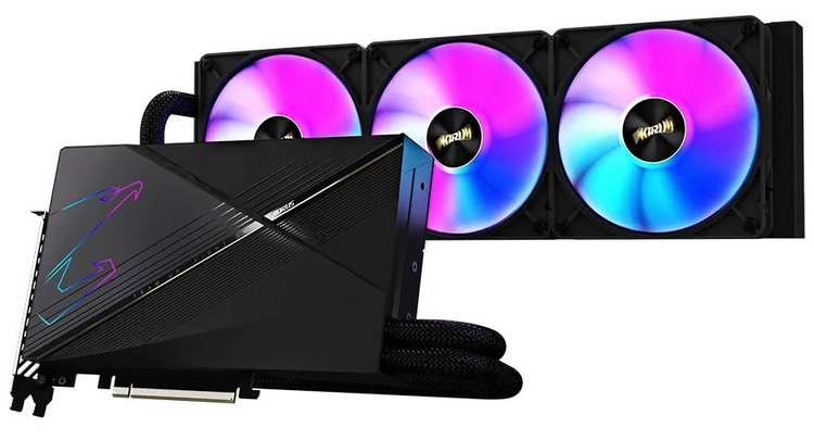 Para a GPU desta versão, é indicado o overclock de fábrica da GPU para 2565 MHz. Lembre-se de que a frequência máxima de referência do chip gráfico para a GeForce RTX 4080 é de 2505 MHz. As dimensões da versão Aorus GeForce RTX 4080 Xtreme Waterforce WB são 235×169×29mm.