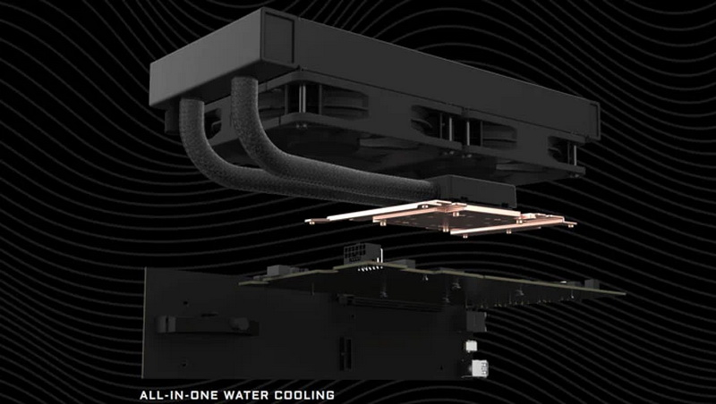 A refrigeração da GeForce RTX 4090 na Gaming Box é um sistema de refrigeração líquida sem manutenção com um radiador de alumínio de 240 mm e um par de ventoinhas de 120 mm. Ele inclui um bloco de água de cobertura total para remover o calor do chip gráfico, chips de memória e elementos do subsistema de energia. Um fluxo adicional de ar fresco no interior é fornecido pelas superfícies perfuradas dos painéis laterais e superiores da Gaming Box.