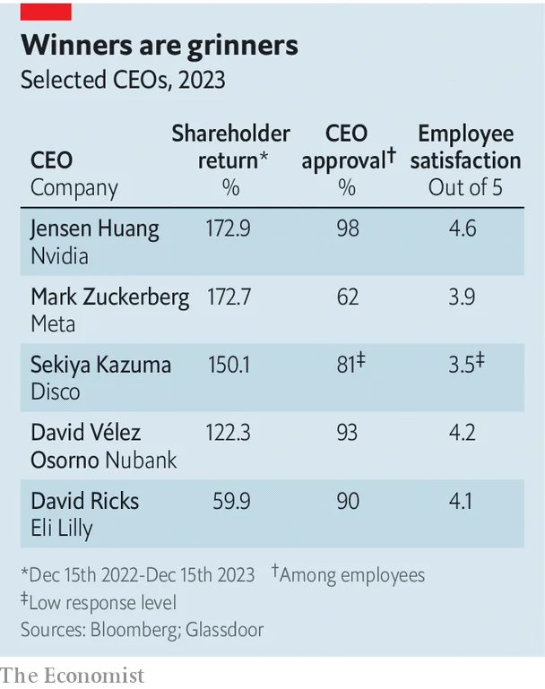 Por fim, a posição de Huang no ranking dos Melhores CEOs de 2023 da The Economist foi influenciada pelo nível de satisfação no trabalho entre os funcionários da empresa. Para a NVIDIA esse número foi de 4,6 em uma escala de cinco pontos; para a Meta✴, que ficou em segundo lugar com seu fundador Zuckerberg, não ultrapassou 3,9 de acordo com o Glassdoor. Não há dúvida de que no próximo ano a NVIDIA continuará a colher os frutos de seus muitos anos de trabalho na promoção de uma plataforma para acelerar a computação, e outras publicações de negócios prestarão homenagem ao seu fundador e líder permanente.
