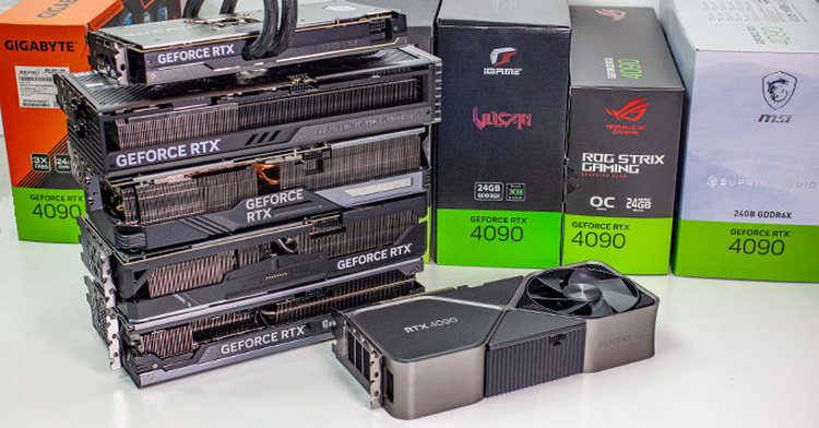 Por exemplo, o portal TechPowerUP recebeu seis placas de vídeo GeForce RTX 4090 para análise de uma só vez em versões da Colorful, MSI, ASUS, Palit e outros fabricantes, além de uma modificação de referência da GeForce RTX 4090 Founders Edition da própria NVIDIA.
