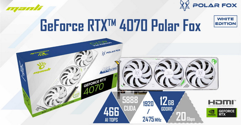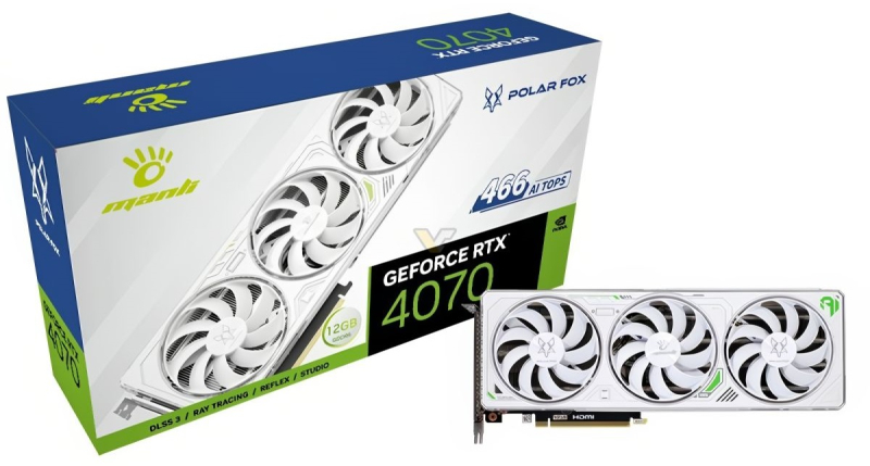 Manli lançou três placas de vídeo GeForce RTX 4070 com memória GDDR6 – duas versões da GeForce RTX 4070 Polar Fox, bem como um modelo chamado simplesmente Manli GeForce RTX 4070.