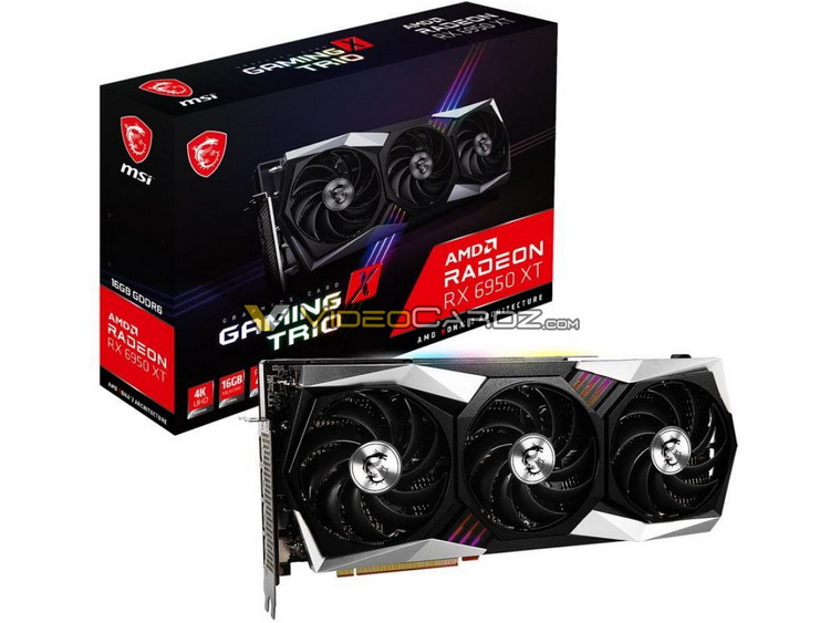 Por sua vez, o modelo MSI Radeon RX 6950 XT Gaming X Trio também é equipado com três conectores de alimentação de 8 pinos, mas usa um design de 2,5 slots.