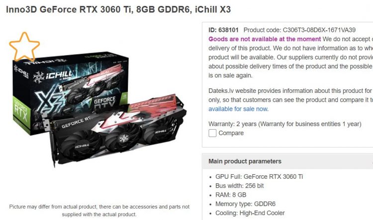 De acordo com o recurso VideoCardz, os varejistas europeus começaram a se preparar massivamente para o lançamento das vendas do novo acelerador gráfico GeForce RTX 3060 Ti. Modelos da Gigabyte, Inno3D e Zotac apareceram na variedade de vários vendedores europeus. No entanto, não será possível comprar essas placas de vídeo antes de 2 de dezembro.